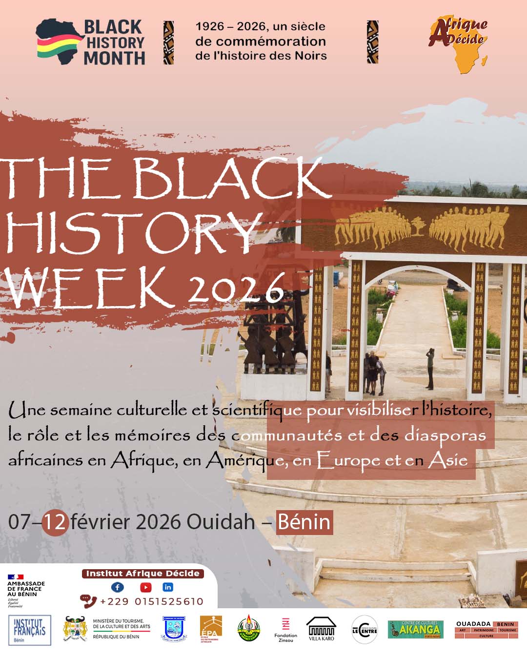 𝗕𝗹𝗮𝗰𝗸 𝗛𝗶𝘀𝘁𝗼𝗿𝘆 𝗪𝗲𝗲𝗸 2026 | 𝗢𝘂𝗶𝗱𝗮𝗵 𝗖𝗼𝘁𝗼𝗻𝗼𝘂 𝗣𝗼𝗿𝘁𝗼-𝗡𝗼𝘃𝗼    Initiée par l’Institut Afrique Décide à Ouidah, en partenariat avec l’Institut français du Bénin, la Black